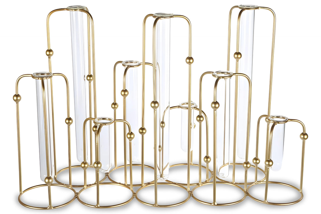 Metal Clustered Bud Vase Holder Gold13.5"H