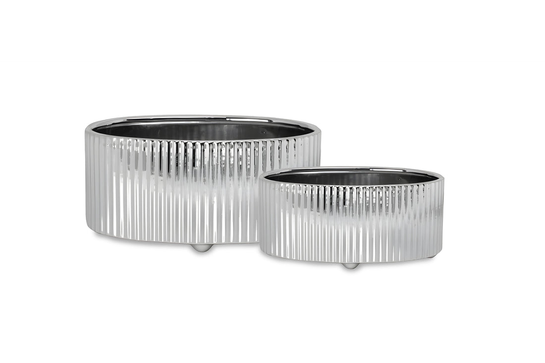 Vase Oval Silver13.50"x8.25"x7.00"H;