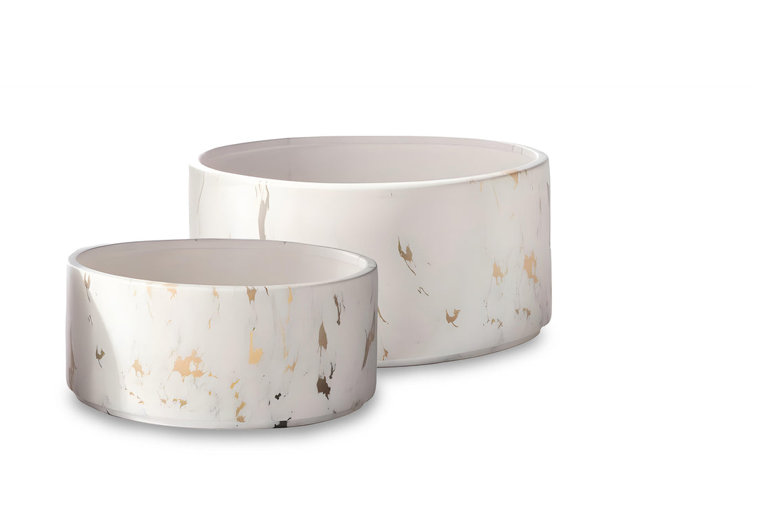 Ceramic Low Round PotWhite and Gold 13.50"x13.50"x7.00"H